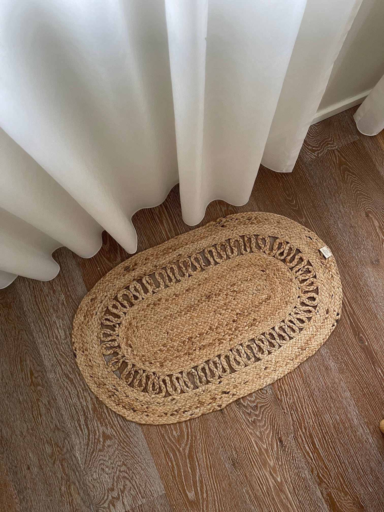 Denne smukke gulvmåtte er håndvævet i Indien i det slidstærke materiale - jute.