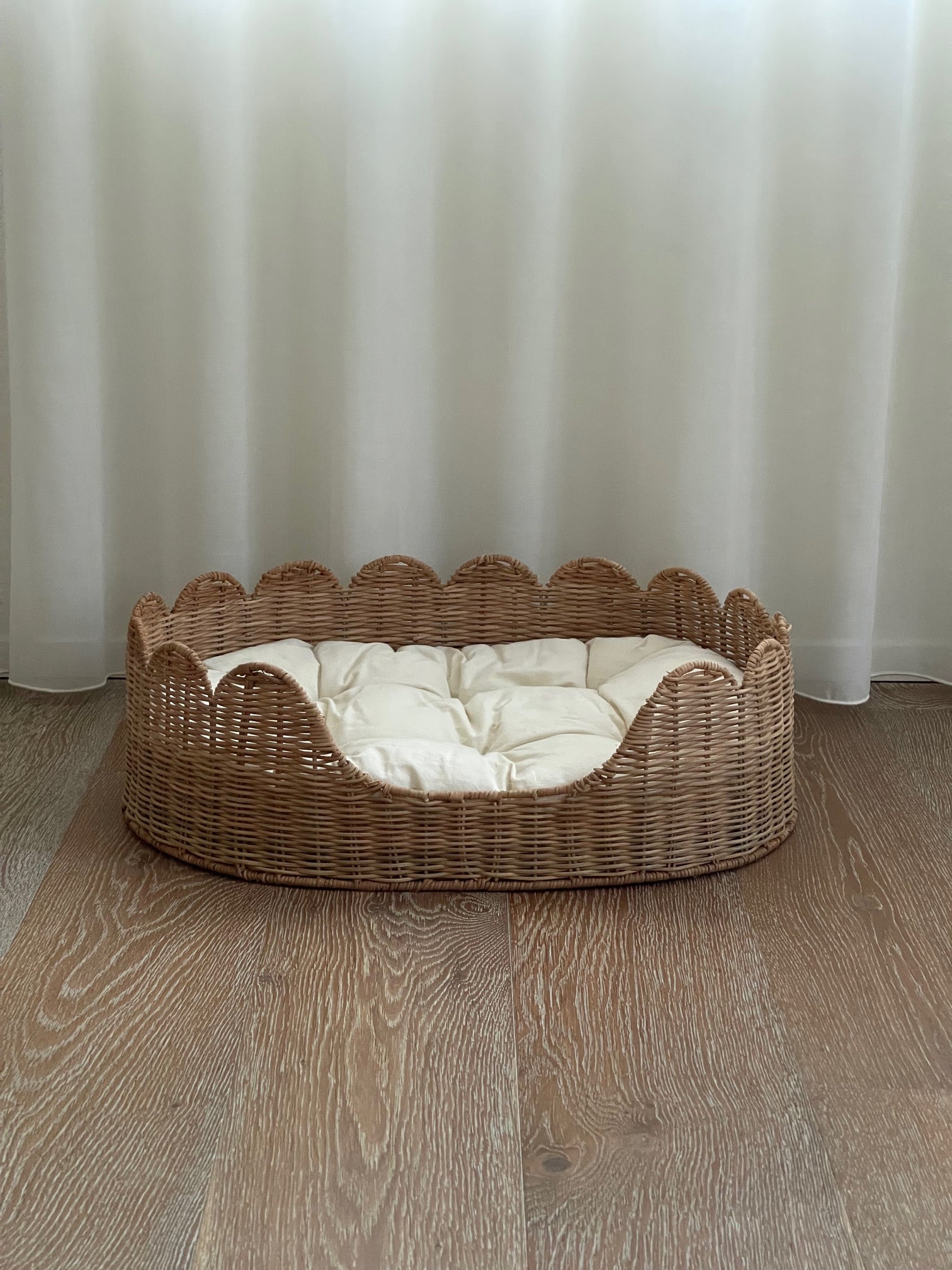 Beautiful dog basket in Rattan. Including a soft pillow.
