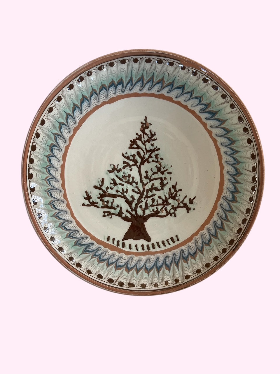 Smuk hånddrejet og håndmalet keramiktallerken fra Horezu. Malet efter traditionel rumænsk metode, som er optaget som en del af UNESCO's verdensarv.